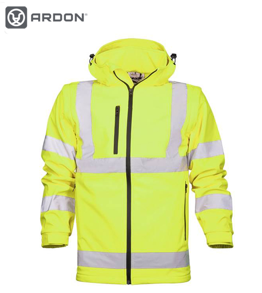 HI-VIZ softshell jakna REF 501 sa odvojivom kapuljačom, odvojivim rukavima te vodootpornim patetnim zatvaračima čini ovu jaknu izrazito funkcionalnom za nošenje u svim vremenskim uvjetima. Softshell materijal sa TPU membranom učinkovito sprječava prodiranje vlage, štiti od utjecaja kiše, te djeluje kao odlična zaštita od naleta vjetra. 2 horizontalne i 2 vertikalne reflektirajuće trake s prednje i stražnje strane omogućuju maksimalnu vidljivost u uvjetima gdje je ona smanjena ili minimalna.