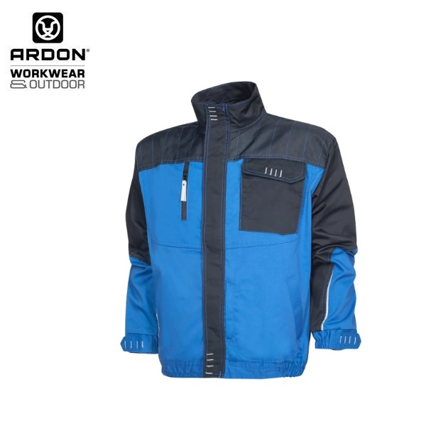 Radna jakna s pojačanjem na ramenima od 600D Oxford poliestera s funkcionalnim džepovima, zatvaranje skrivenim patent zatvaračem s čičak trakom.