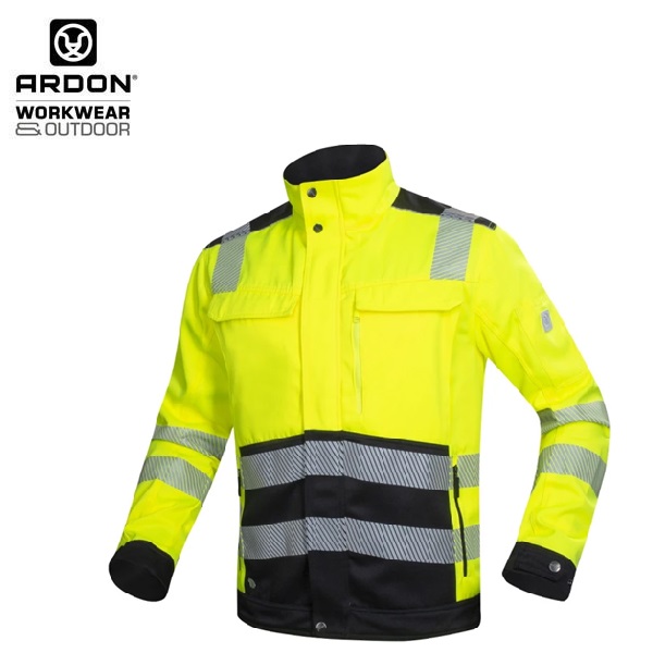Radna jakna iz HI-VIZ kolekcije ARDON®SIGNAL savršeno pristaju zahvaljujući svojem ergonomskom oblikovano tankom kroju. Izrađena je od čvrste keper tkanine koju krasi visoka otpornost na trganje i kidanje. Na rukavima se nalaze kopče pomoću kojih se može podesiti njegova širina. Sadrži također 2 unutarnja džepa, 2 velika džepa na prsima sa čičkom, 2 prostrana džepa s patetnim zatvaračem te dodatnim džepom na lijevom rukavu za olovke. Dvije reflektirajuće trake sprijeda, 2 straga, te 2 na rukavima osiguravaju joj maksimalnu vidljivost.