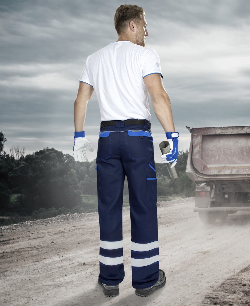 Radne hlače visoke vidljivosti izrađene od izdržljivog pamučnog twill materijala koji pruža udobnost i dugotrajnost pri svakodnevnom radu. Reflektirajuće trake i dodatni reflektirajući elementi povećavaju vidljivost i sigurnost korisnika. Ojačani dijelovi na koljenima i praktični džepovi za alat čine ih funkcionalnim izborom za različite radne zadatke.