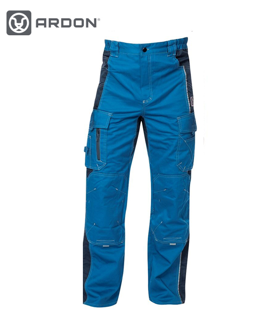 Na stražnjoj strani se nalazi sedlo i dva ušivena džepa, ostali slojeviti džepovi za alat nalaze se na bočnoj strani bedara. Za dodatnu sigurnost radnika hlače su prošivene kontrastnim traper koncem i nadopunjene originalnim srebrnim reflektirajućim printevima.