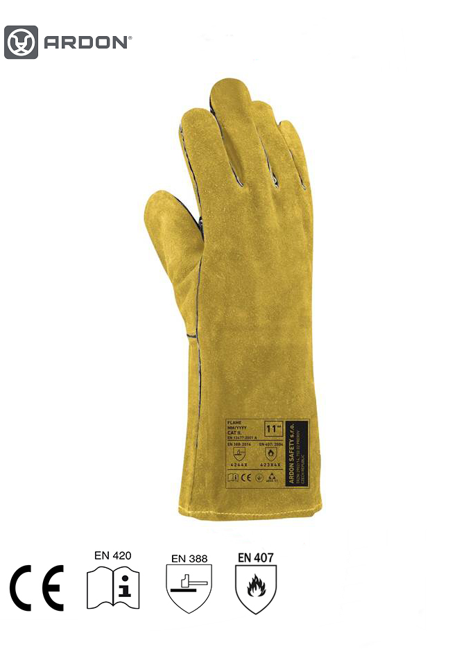 Rukavica ARDON® FLAME je varilačka rukavica sa pojačanim dlanom i šavovima od kevlara.
