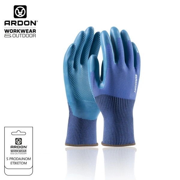 Rukavice su izrađene od univerzalnog i izdržljivog poliesterskog pletiva. Za još veću zaštitu ruku u predjelu dlanova i prstiju imaju reljefni sloj od lateksa koji osigurava neklizajući hvat, što također smanjuje umor ruku tijekom dugotrajnog ručnog rada.