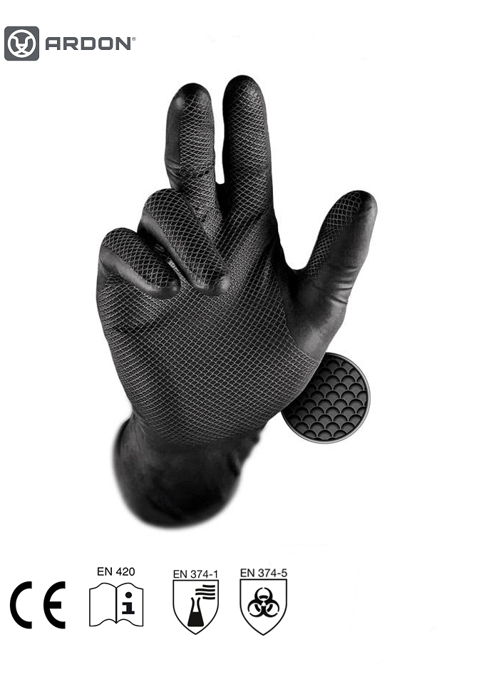 Materijal: crni nitril bez pudera s vanjskom stranom strukturiranom