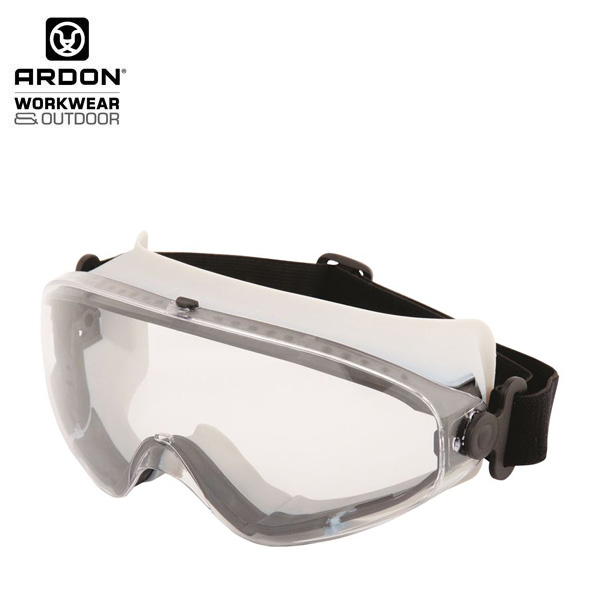 Dizajnerske zatvorene zaštitne naočale s crno-sivim polipropilenskim okvirom i s podesivom gumicom od 25 mm.