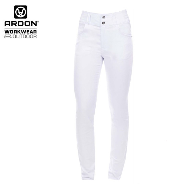 Ženske rastezljive radne hlače ARDON® JASVENA s povišenim strukom izrađene su u kombinaciji pamuka, poliestera i elastina.