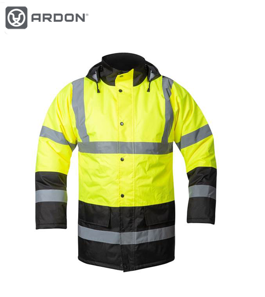 Zimska vodootporna jakna REF 602 sa 2 reflektirajuće vodoravne trake, 2 okomite trake sprijeda i straga, te 2 trake na rukavima osigurava izvrsnu uočljivost u mraku i u uvjetima smanjenje vidljivosti.