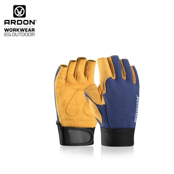 Zaštitne rukavice ARDON AUGUST bez prstiju izrađene su od visokokvalitetne goveđe kože koja pruža izvrsnu zaštitu i trajnost. Jastučići u dlanu pomažu u ublažavanju udaraca i modrica, čime se smanjuje rizik od ozljeda. Poleđina rukavica je izrađena od poliestera i elastana u plavoj boji. Vrhovi prstiju su odrezani kako bi se osigurala veća osjetljivost, što je osobitno bitno kod aktivnosti koje zahtjevaju preciznost i dodir. Širina manžete je podesiva s čičkom, što omogućuje prilagođavanje veličine rukavica za različite veličine ruku i omogućuju udobnost i stabilnost tijekom nošenja.