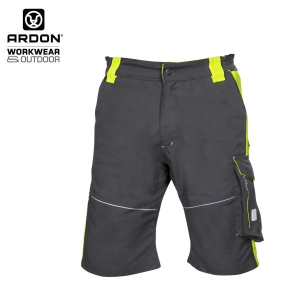 Radne kratke hlače NEON kolekcije u crno-žutoj boji, izrađene od čvrste canvas tkanine visoke otpornosti na habanje, zatezanje i trganje. Ergonomski oblikovan slim kroj i elastični pojas s integriranom gumom osiguravaju savršeno pristajanje i udobnost tijekom rada.