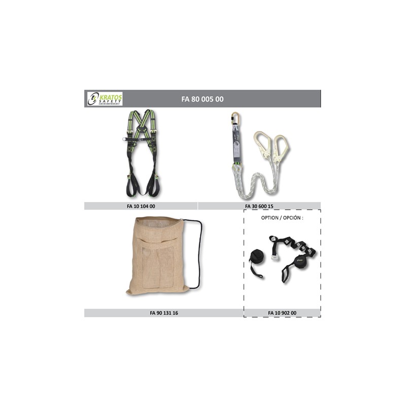 Set za rad na željeznim konstrukcijama. On uključuje transportnu torbu, pojas za cijelo tijelo FA 10 104 00, spojnu napravu s ublaživačem pada i dvije kuke FA 30 600 15.