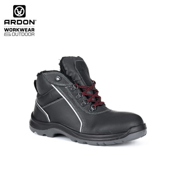 Radne gležnjače s kožnim gornjištem s hidrofobnom obradom, s reflektirajućim elementima, podstavljene sintetičkim krznom. Potplat izrađen od PU/PU materijala s dvostrukom gustoćom.