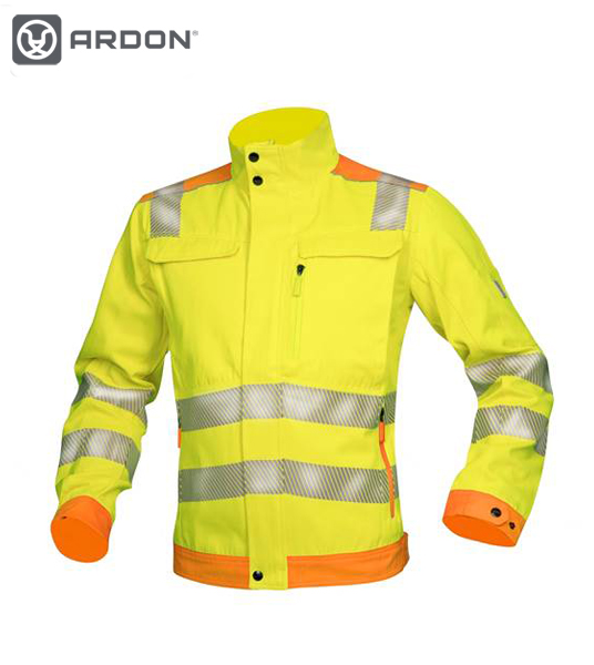 Radna jakna iz HI-VIZ kolekcije ARDON®SIGNAL savršeno pristaju zahvaljujući svojem ergonomskom oblikovano tankom kroju. Izrađena je od čvrste keper tkanine koju krasi visoka otpornost na trganje i kidanje. Na rukavima se nalaze kopče pomoću kojih se može podesiti njegova širina. Sadrži također 2 unutarnja džepa, 2 velika džepa na prsima sa čičkom, 2 prostrana džepa s patetnim zatvaračem te dodatnim džepom na lijevom rukavu za olovke. Dvije reflektirajuće trake sprijeda, 2 straga, te 2 na rukavima osiguravaju joj maksimalnu vidljivost.