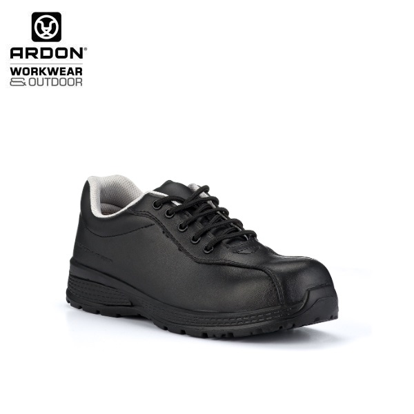 Crne radne cipele s perivim gornjišten od mikrovlakana u izgledu kože.