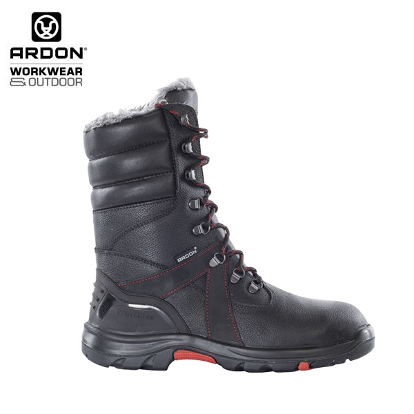Kožne zimske visoke radne cipele s čeličnom zaštitnom kapicom i tabanicom protiv probijanja. Izrađene su od bivolje kože s vodootpornim tretmanom. Potplat je izrađen od PU/gume, protuklizan, anitstatičan i otporan na kontaktnu toplinu do 300C.