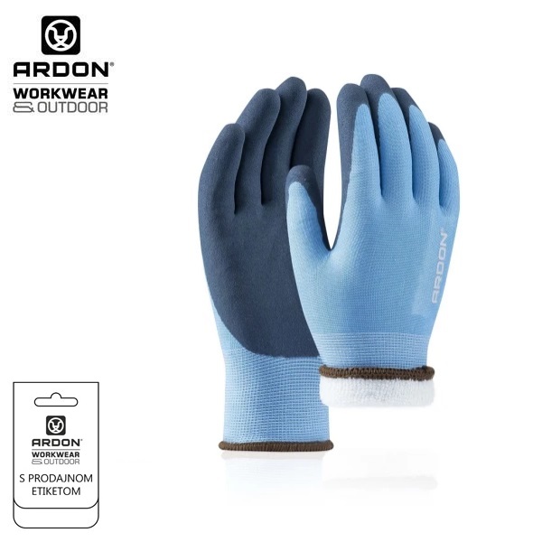 Zaštitne zimske radne rukavice ARDON®WINFINE s dvostrukim pletenjem za maksimalnu toplinu ruku, umočenim u lateks pjenu s uzorkom pijeska (završna obrada nalik pijesku).